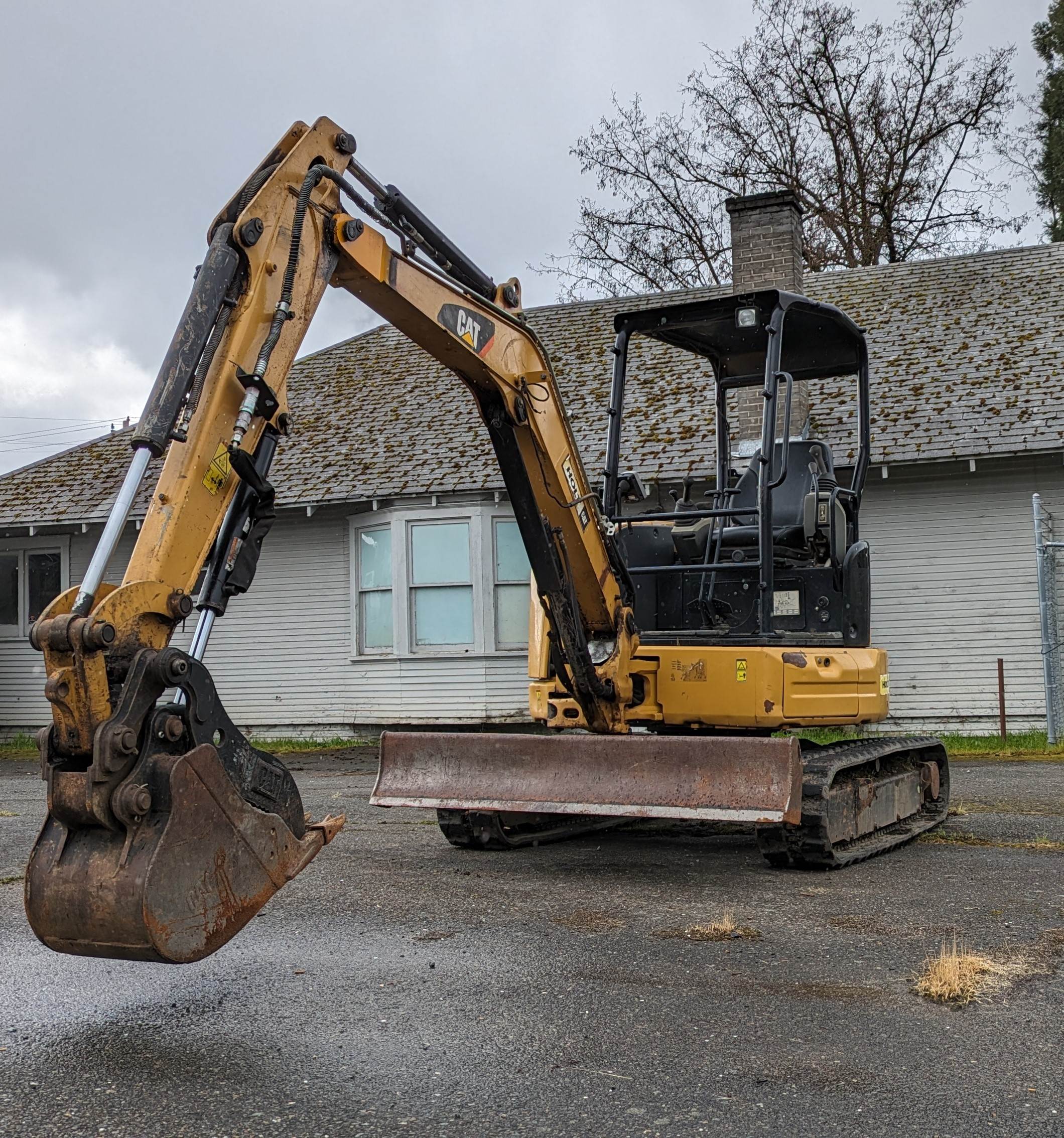 CAT 303.5e2 with hydraulic thumb available for rent. Delivery is available for a fee.
